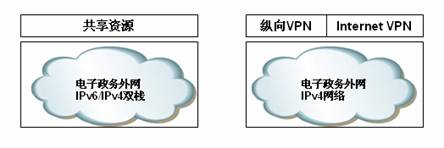 ![]() 电子政务外网IPv4向IPv6过渡之路 电子政务外网目前运行的是IPv4业务,并采用MPLS VPN技术来隔离不同的业务,技术实现上较为复杂。考虑到IPv6规范制定尚不完善,IPv6技术应用并不成熟,在国内也只有IPv6实验网络,还没有真正意义上的商用IPv6网络出现,因此在电子政务外网不适宜建设大规模的IPv6网络,可采取先试点,再推广的方式进行。在国家电子政务外网和少数几个部委、少数省电子政务外网先进行试点IPv6建设,试点单位的终端主机升级为IPv6/IPv4双栈;逐步增加IPv6业务系统,先增加一部分IPv6/ IPv4双栈业务,既能支持新增IPv6终端主机的访问,也支持未能升级的IPv4终端主机的访问。试点网络的建设应兼容IPv4和IPv6两种协议,考虑到国家电子信息产业振兴规划强调推进下一代网络(IPv6)的试验和推广,在政务外网上的网络升级应采用更为先进的技术--双栈技术实现,为后续建设纯IPv6网络进行技术积累。在技术设计上,先在共享资源区试点IPv6的IP地址分配、路由规划等基本的IPv6技术,然后再试点IPv6 MPLS VPN技术,将部分纵向VPN切换到IPv6网络运行。 在电子政务外网上实现端到端的IPv6涉及到三个系统的升级,分别是业务系统、终端系统和网络网络。 业务系统(包括业务系统软件及相应的数据库、中间件):因为涉及到寻址,所以需要进行升级。以数字监控系统为例,就涉及监控终端、编解码器等的IPv6地址升级,以及服务器端寻址方式的升级。目前我国仅在教育科研网进行了IPv6建设,业务应用多以游戏、视频下载点播等校园应用为主,适合政务应用的IPv6资源和业务很少。因此在政务外网上可考虑逐步开发适合政务应用的IPv6业务,如公文交换、邮件系统等。 终端系统:如果操作系统是windows Vista及以上系统,默认支持IPv6并且可以支持DHCP v6,无需升级;如是Windows其他版本或其他操作系统,虽可以升级为支持IPv6,但升级后不能支持DHCP v6,因此建议操作系统采用windows Vista或以上系统。通过升级,使个人终端变成双栈主机,即可以同时访问IPv4资源和IPv6资源。 网络系统:目前主要有两种IPv4->IPv6的过渡技术。一种是隧道技术,即将IPv6协议封装在IPv4报文中穿越IPv4网络,适合为较少的互相独立的IPv6网络(或终端)提供联通性。另一种是双栈技术,网络设备必须同时支持IPv4/IPv6协议栈,这种过渡方式能兼容目前IPv4和IPv6共存的现状,同时又可以平滑的从IPv4升级到IPv6. 在电子政务外网可采用双栈技术和隧道技术结合的方式,在骨干网和部分试验局域网采用双栈技术,在投资有限的单位局域网可采用隧道技术。 电子政务外网IPv6方案 电子政务外网IPv6骨干网络建议分阶段建设,先基于双栈技术,建设基础IPv6网络,待技术积累成熟、网络运行稳定后,再进行IPv6 MPLS VPN的建设。电子政务外网基础IPv6网络建设可以考虑两种建设模式,一是新建IPv6/IPv4双栈网络,二是现有IPv4网络升级为双栈。下面逐一加以介绍。 1)新建IPv6/IPv4双栈网络 新建IPv6/IPv4双栈网络可与现有IPv4骨干网规模相同,但链路带宽略低,两张骨干网同时运行。新建骨干网络承载IPv4和IPv6协议,后续该新建网络可作为IPv6骨干网专门承载IPv6协议。 可试点将共享资源区的业务逐步切换到IPv6,在电子政务外网IPv4网络依旧承载纵向VPN和Internet业务,如图1.